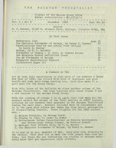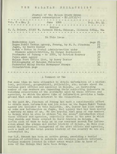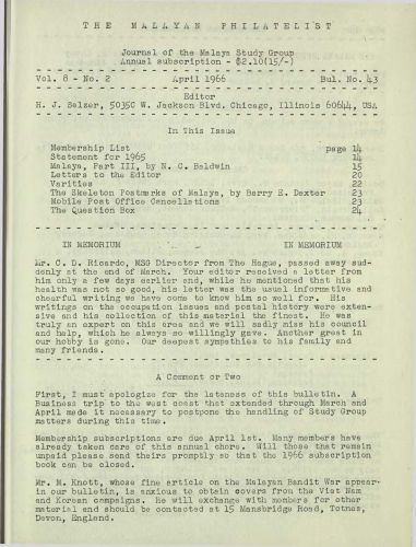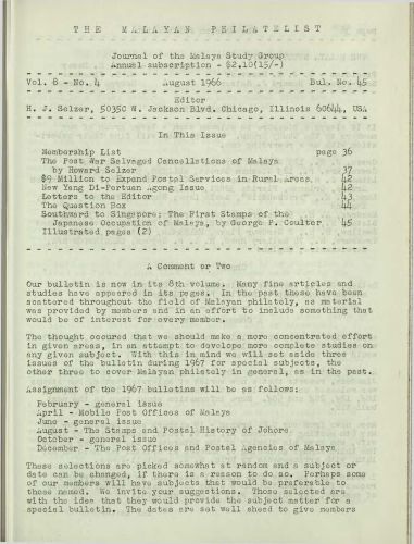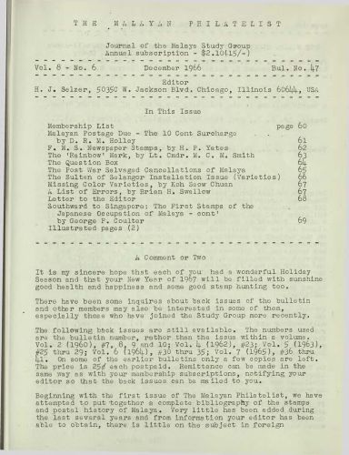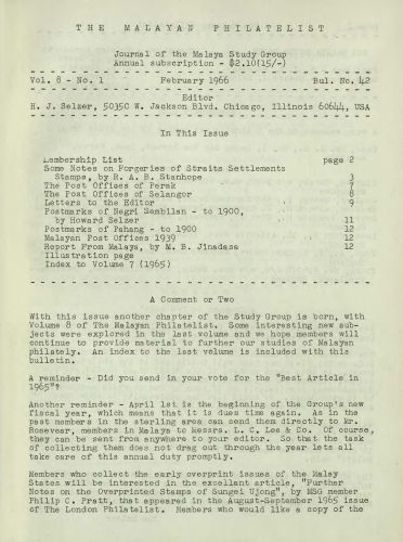The Malayan Philatelist Issues