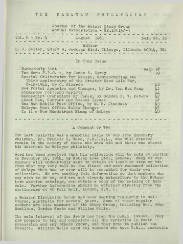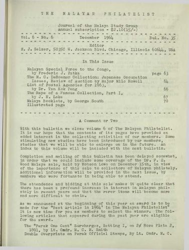 The Malayan Philatelist Issues