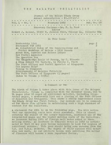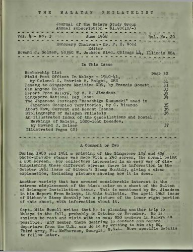 The Malayan Philatelist Issues
